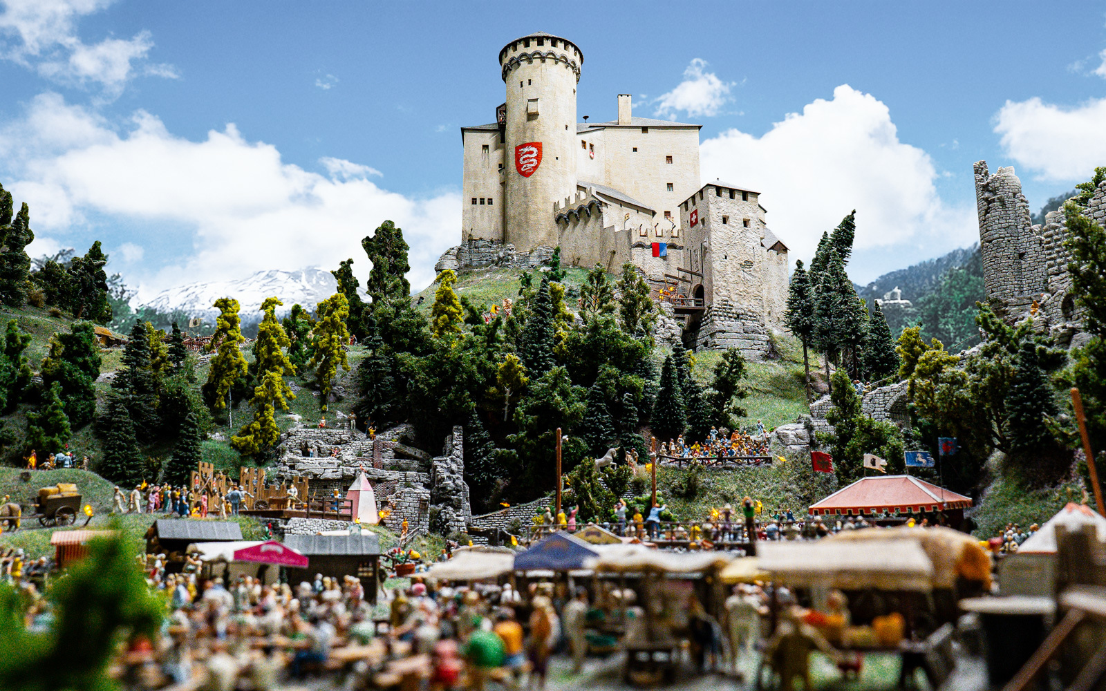 Located all the way to the south of the Wunderland things become a lot more Italian: the canton Ticino is literally covered in highlights. Next to a huge open air concert, just below the medieval castle, lies the most expensive real estate of the world. 154,340 Euro per square meter is the price for construction ground here. In an online-auction those interested in miniature real estates were able to buy five properties for the good cause. The proceeds of the auction (29,853.11 Euro) was donated to different charitable organizations.