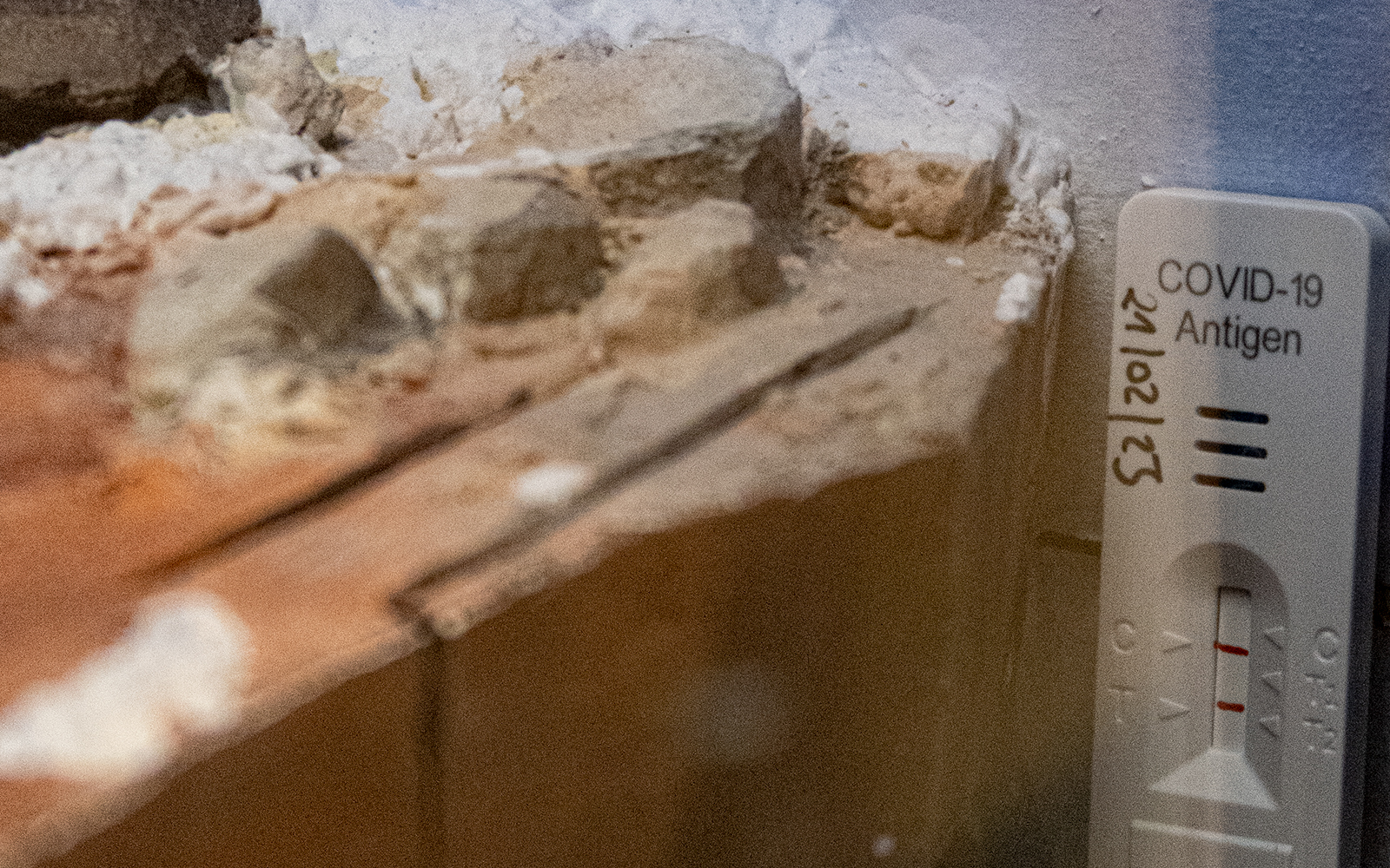 Hidden behind the ice is a Covid test, reminiscent of the last pandemic. The test is positive and shows that even this faraway place has not been spared.