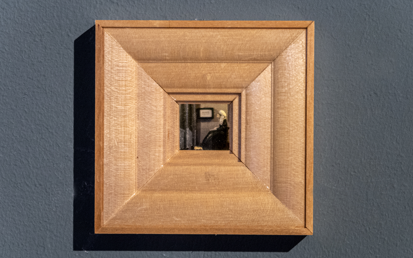 When Steffi came up with the idea for this painting, she immediately found a model figure that looked like the mother and was already sitting in the right position. She only had to model the bonnet and the dress and build the interior. The figure dictated the scale, so the diorama is much smaller than the others.