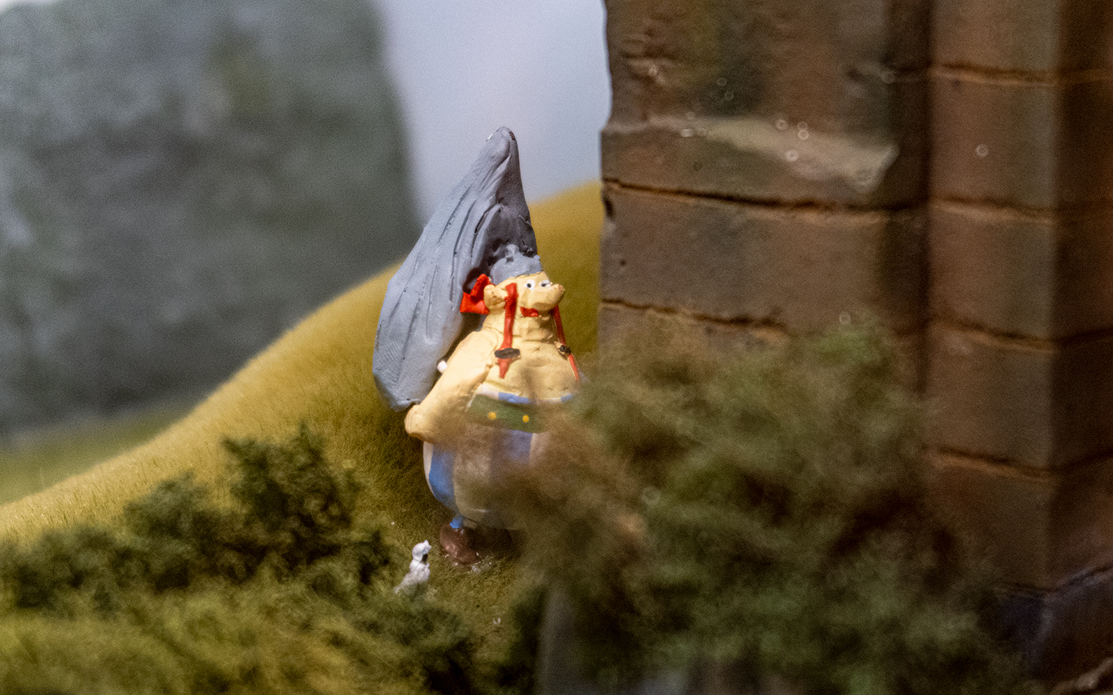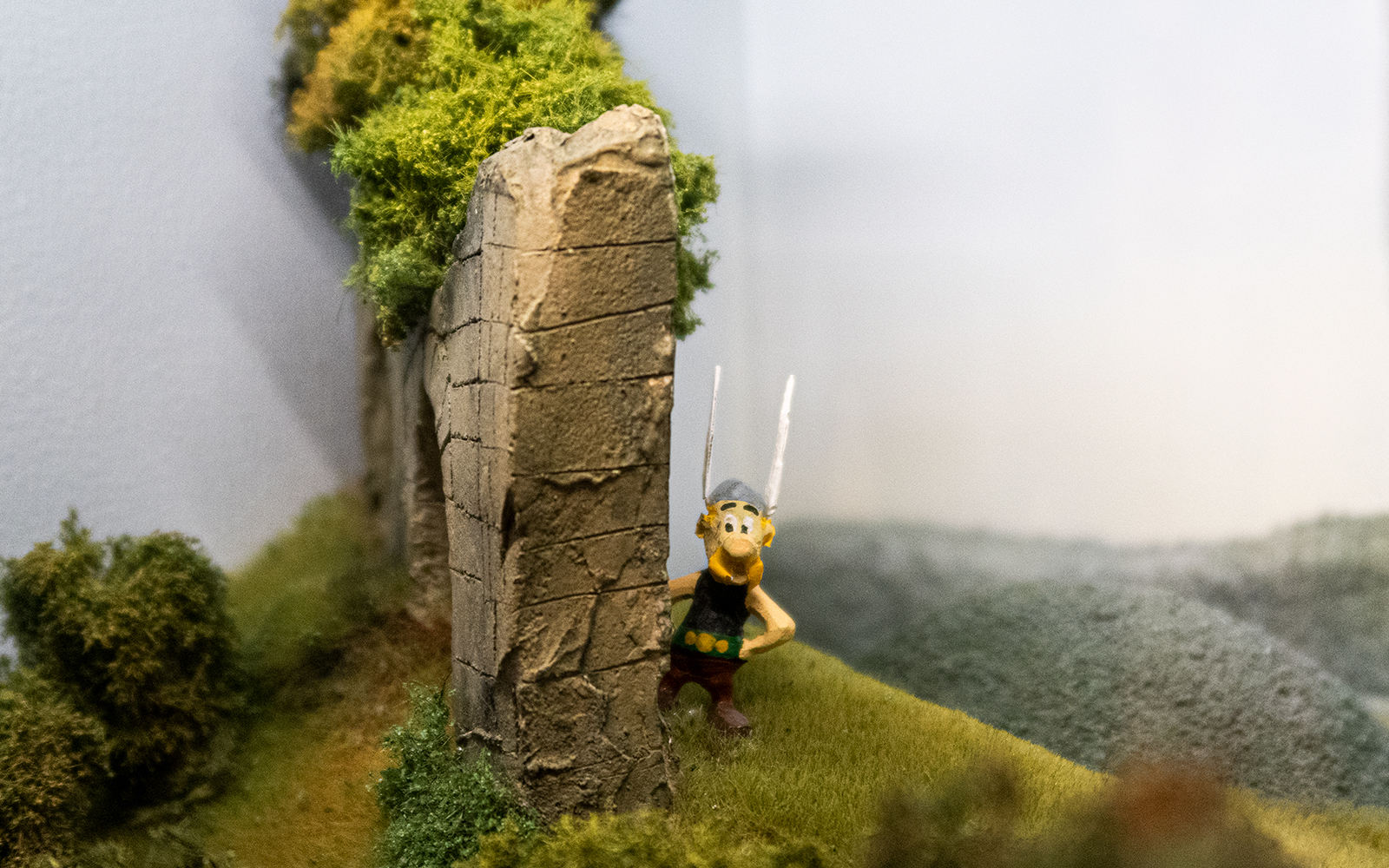 Hendryk chose this work because he was interested in the motif of Italy and liked the warmth that the picture emitted. The idea of hiding Asterix and Obelix behind the ruins came to him during the process, because it fitted in very well with the overall picture. Obelix carries a large menhir on his back and fits in perfectly with the landscape. Little Dogmatix can't be missing either and stands faithfully by Obelix's side.